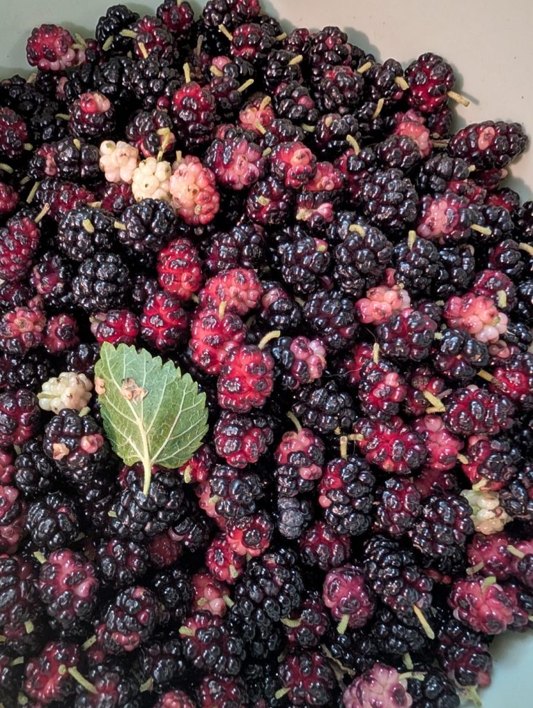 Mulberries $5 / pint – same as lettuce, I’m keeping produce in the fridge as even ice packs in the cooler are melting in under an hour.